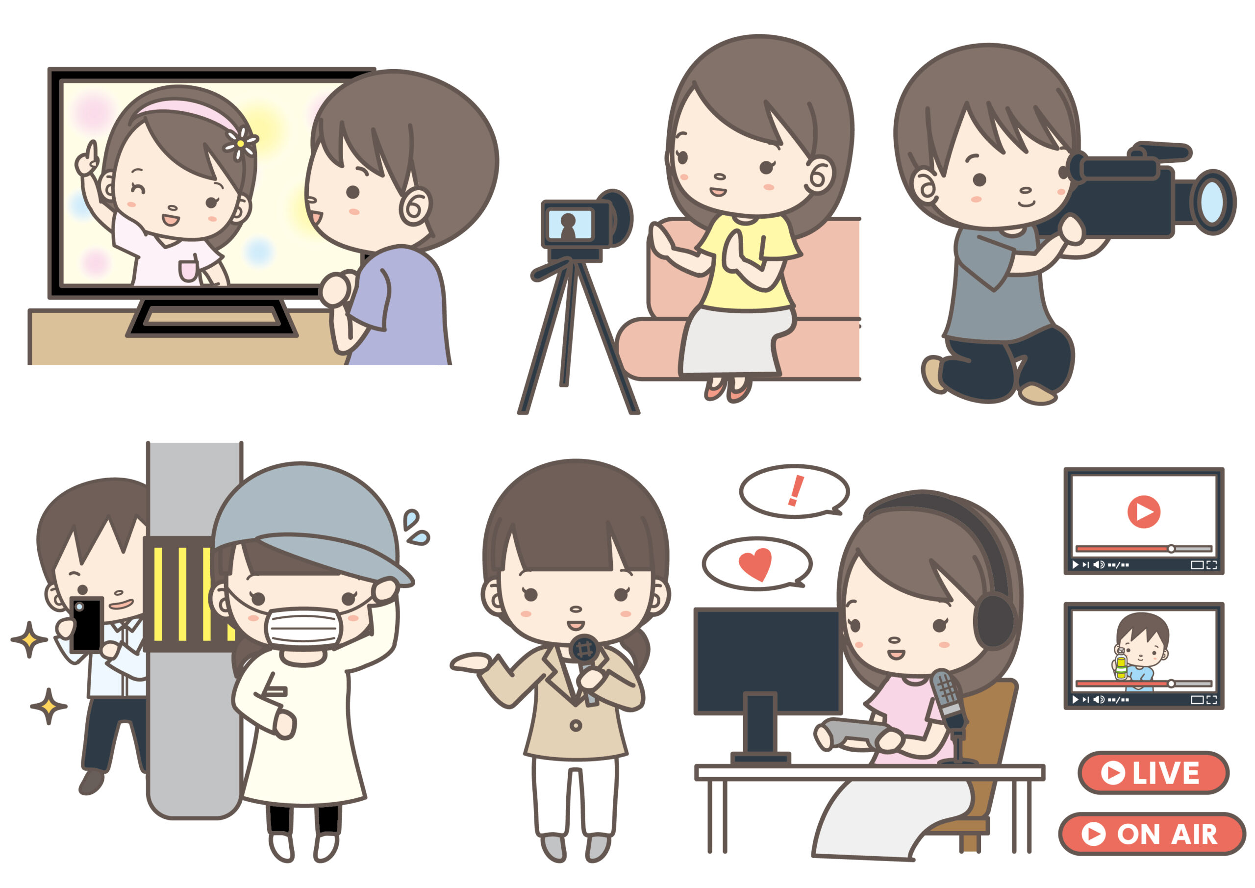 オフィス、撮影現場、イベント会場など、さまざまな場所が登場します。