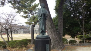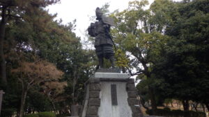 地下道を抜けると、信長像です。少し公園内に入りますが…。
